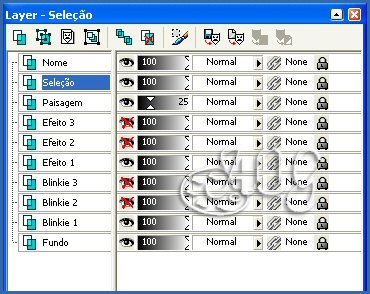 28- No PSP Ativar o Top que estava minimizado Abrir a visibilidade de todas as layers Fechar a visibilidade das layers Blinkie 2, Blinkie 3, Efeito 2 e Efeito 3 Ativar a layer Fundo Edit > Copy Merged
