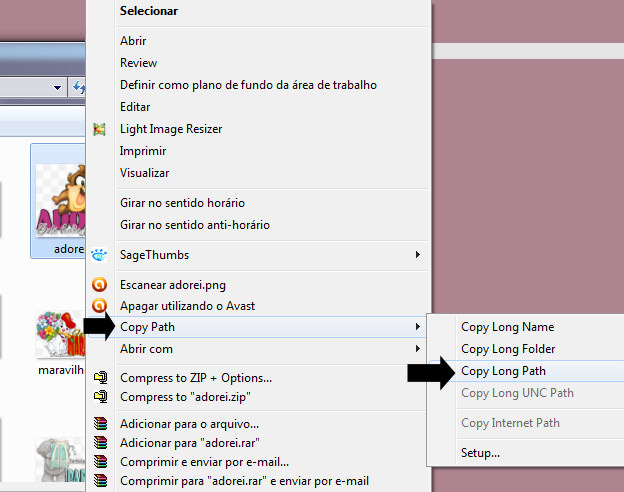 Para copiar o endereço correto do local da imagem ou background que está em uma pasta do computador sugiro baixar esse programinha: CopyPath clique na imagem abaixo para baixá-lo: Após instalar basta você clicar sobre a imagem que quer copiar o endereço com o botão direito do mouse e ir em :