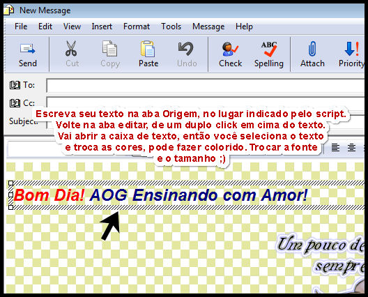 Dica: Podemos escrever o texto na origem no lugar indicado e voltar na aba Editar e terminar da editar nosso texto assim: