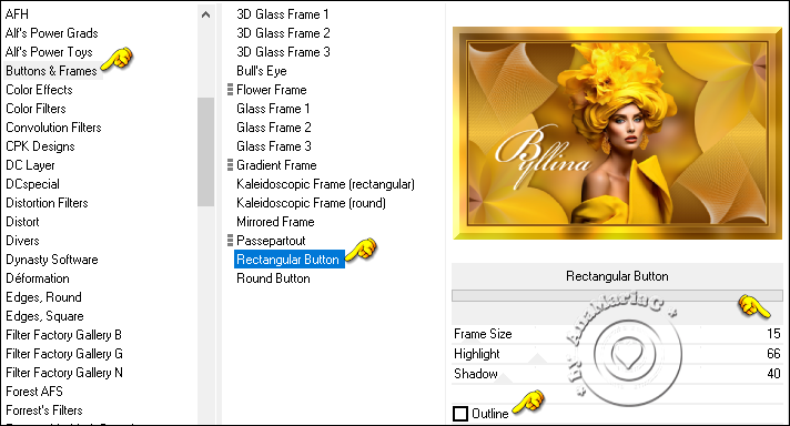 Effects > Plugins > Buttons & Frames > Rectangular Button.