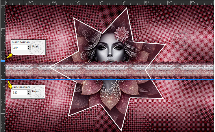 14 - Ativar > View > Rulers colocar duas linhas guias como no print: Guide position: 240 /320