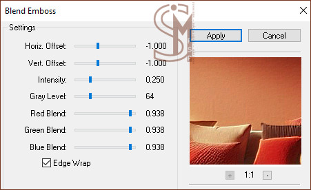 Effects > Plugins > FM Tile Tools > Blend Emboss: Default
