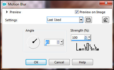 02- Edit > Copy no misted floral. No trabalho... Selections > Select All. Edit > Paste into Selection. Selections > Select None. 03- Adjust > Blur > Motion Blur: Angle 45 > Strength 100