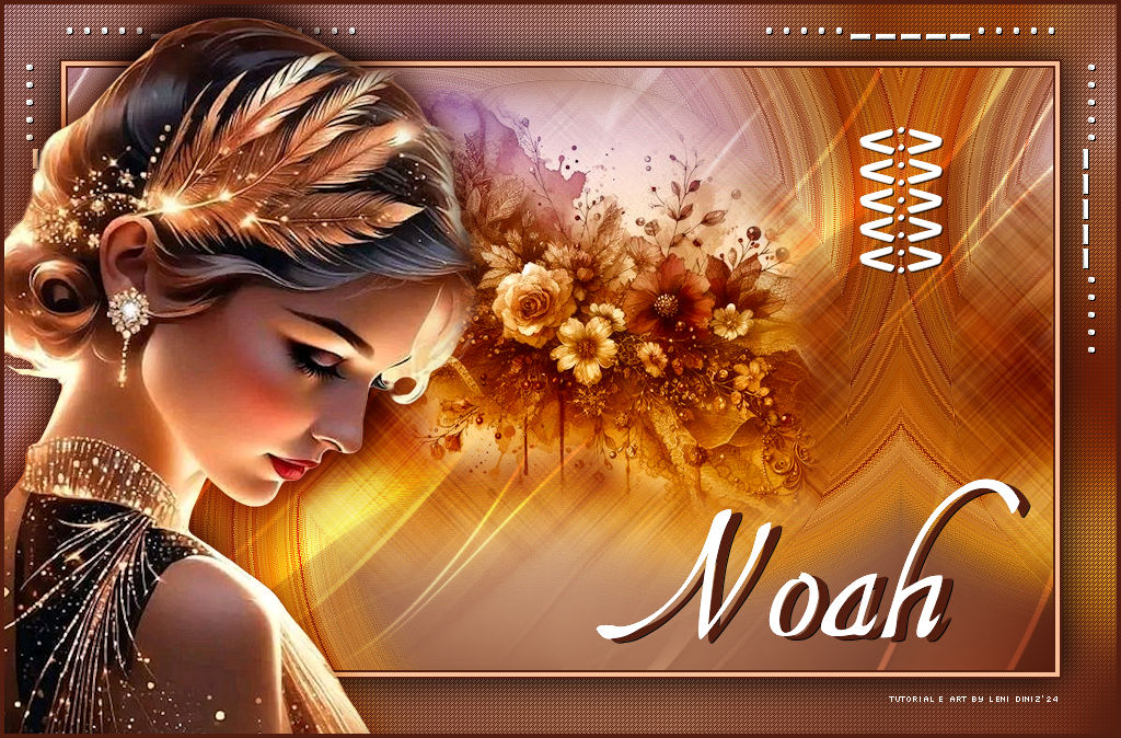 Material: 1 Tube Principal 1 Misted Floral Decor_leni_noah Decor_leni_noah-2 Decor_leni_noah-3 Título_leni_noah PLUGINS: VM Extravaganza > James Bondage CORES: #f9c099 (Foreground cor clara) #531d0f (Background cor escura)