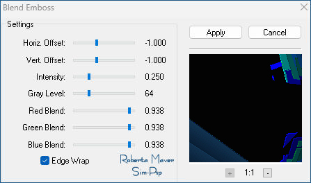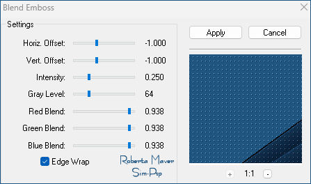 Effects > Plugins > FM Tile Tools > Blend Emboss: Default