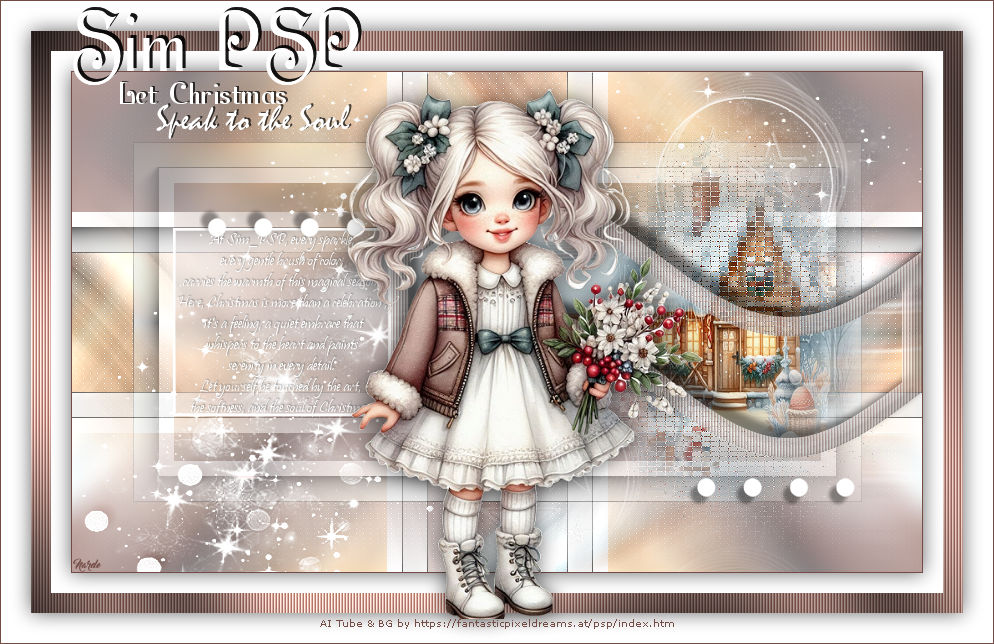 At Sim_PSP, every sparkle, every gentle brush of color, carries the warmth of this magical season. Here, Christmas is more than a celebration, it's a feeling, a quiet embrace that whispers to the heart and paints serenity in every detail. Let yourself be touched by the art, the softness, and the soul of Christmas.