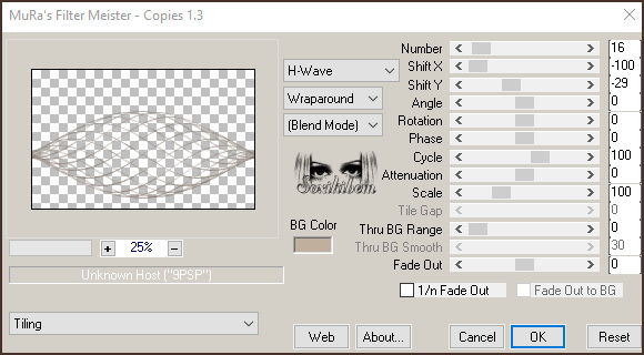 17 - Effects > Distortion Effects > Wave. Image > Mirror > Mirror Horizontal. Pick Tool: Position X: 0, Position Y: 220.