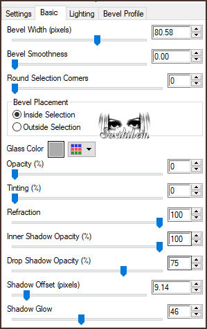 8 - Layers > New Raster Layer. Plugin Alien Skin | Eye Candy 5 Impact > Glass: LBreeze_xiki ou configure como o print abaixo.