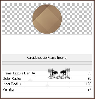 15 - Ativar e abrir a visibilidade da Layer Promoted Selection 1. Selections > Load/Save Selections > Load Selection From Disk: 297_Xiki3. Filters > Unlimited 2.0 > Buttons & Frames > Kaleidoscope Frame (round).