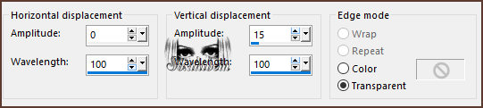Adjust > Sharpness > Sharpen More. Selections > Load/Save Selections > Load Selection From Disk: 297_Xiki4. Effects > Distortion Effects > Wave. Selections > Promote Selection to Layer. Selections > Select None.