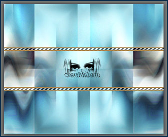 9 - Layers > New Raster Layer. Selection Tool > Custom Selection. Pintar a seleção com a cor 3. Selections > Select None. Layers > Duplicate. Image > Mirror > Mirror Vertical. Layers > Merge > Merge Down 2 vezes.